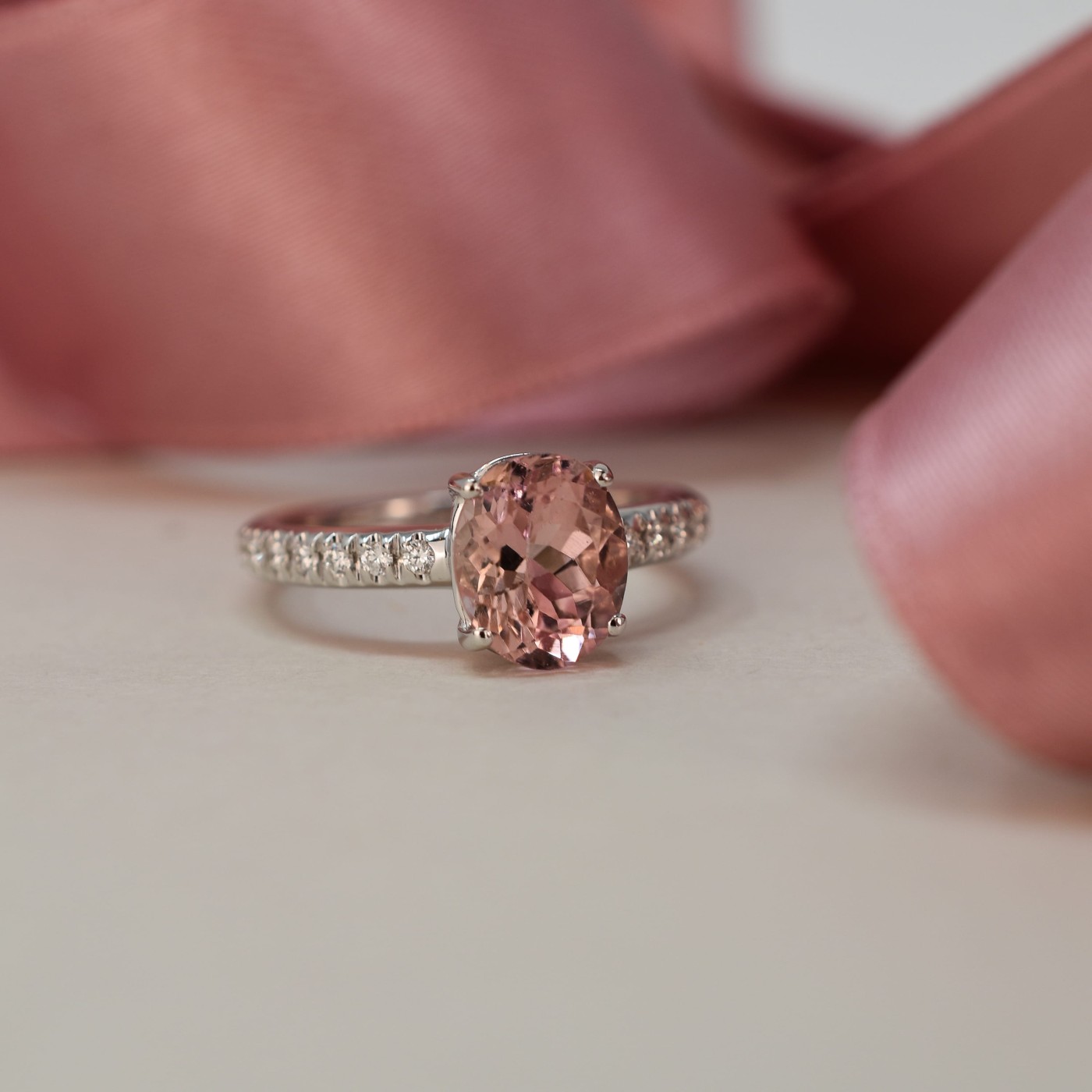 Anello in oro bianco, zaffiro ovale e brillanti