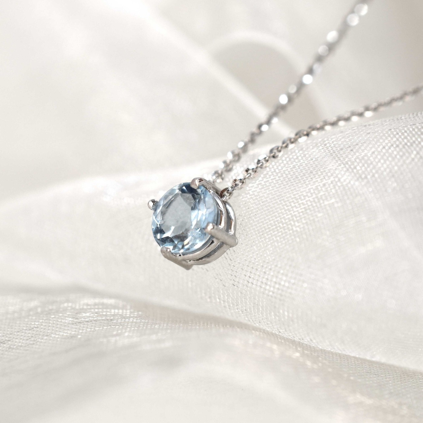 Girocollo oro bianco e acquamarina diametro 6 mm.
