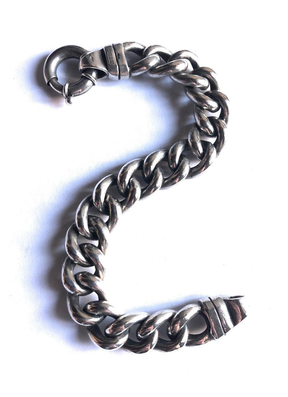 Bracciale catena (piena non svuotata) grumet. Larghezza catena 1.5 cm, in argento 925 massiccio con chiusura a moschettone in argento con molla in acciaio inox, ossidato, lucidato e rifinito a mano da BEBO JEWELRY.